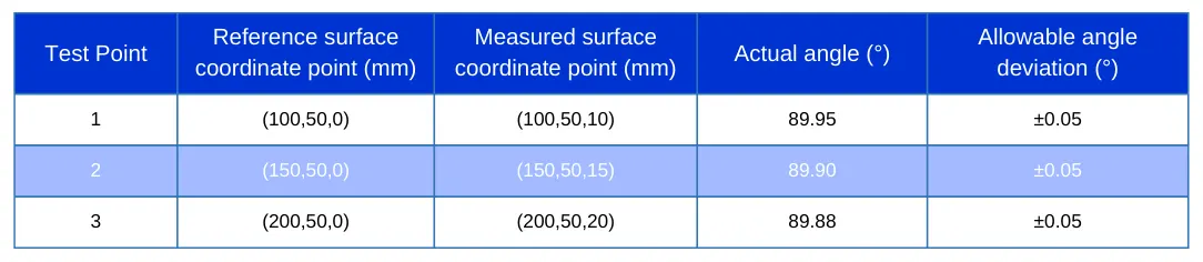 In summary, the data in Table 1 demonstrate the high precision and efficiency of the coordinate measuring machine in inspecting geometric dimensions.