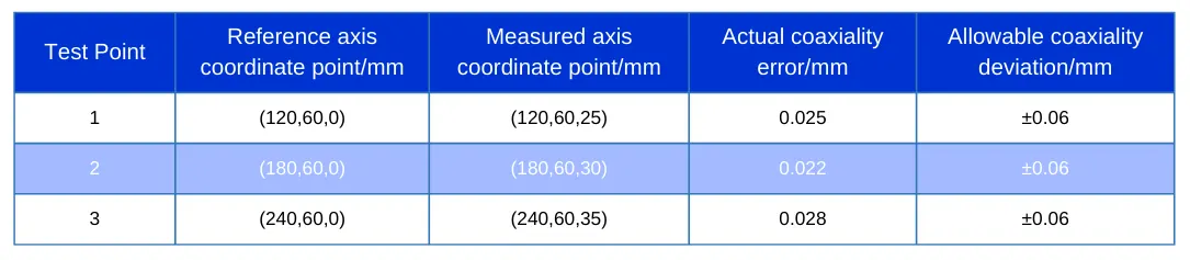 The actual coaxiality errors ranged from 0.022 to 0.028 mm, all of which were less than the maximum allowable coaxiality deviation of ±0.06 mm.