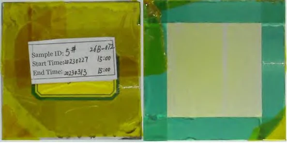 Table 2 presents the test results.The results indicate that no corrosion spots appeared on the specimens after 336 hours of salt spray exposure (as shown in Figure 2), demonstrating excellent corrosion resistance.
