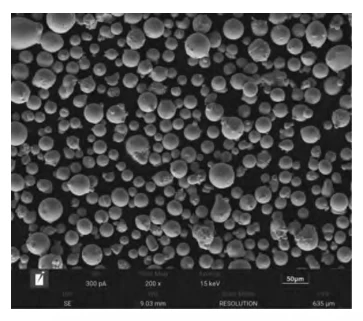 As can be seen from the figure, most of the powder particles are spherical or near-spherical and exhibit good flowability.