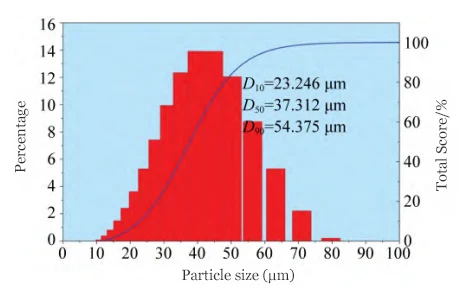 Particle size range of the IN718 powder is narrow. Particle size distribution concentrates primarily between 30 and 50 μm.