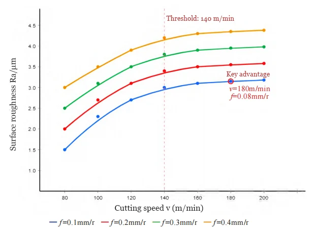 Under the same cutting speed conditions, machining with a small feed rate yields better surface quality but results in relatively lower machining efficiency.